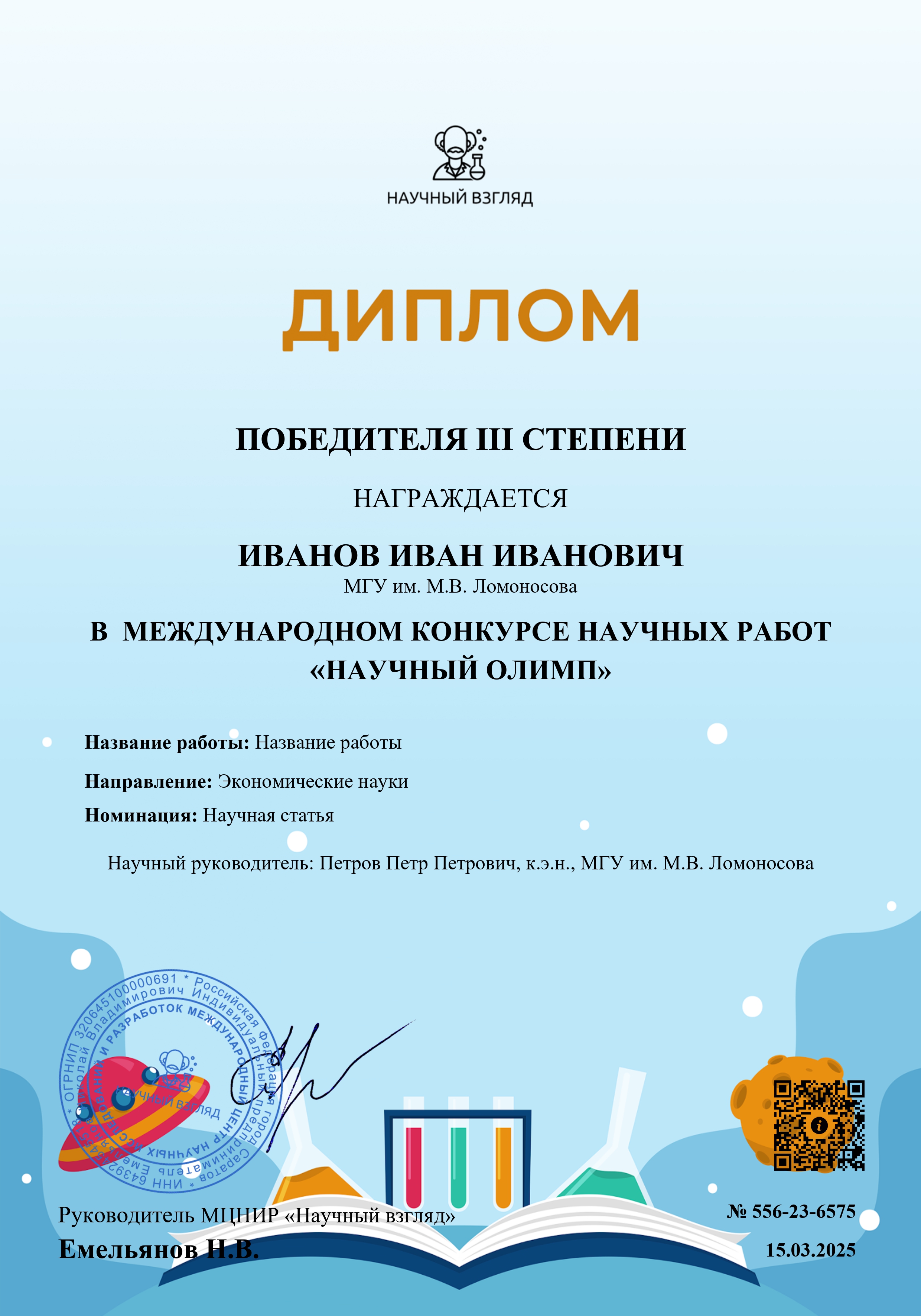 Международный центр научных исследований и разработок «Научный взгляд» объявляет о проведении в 2025 году II Международного конкурса научных работ «Научный олимп» в номинациях: